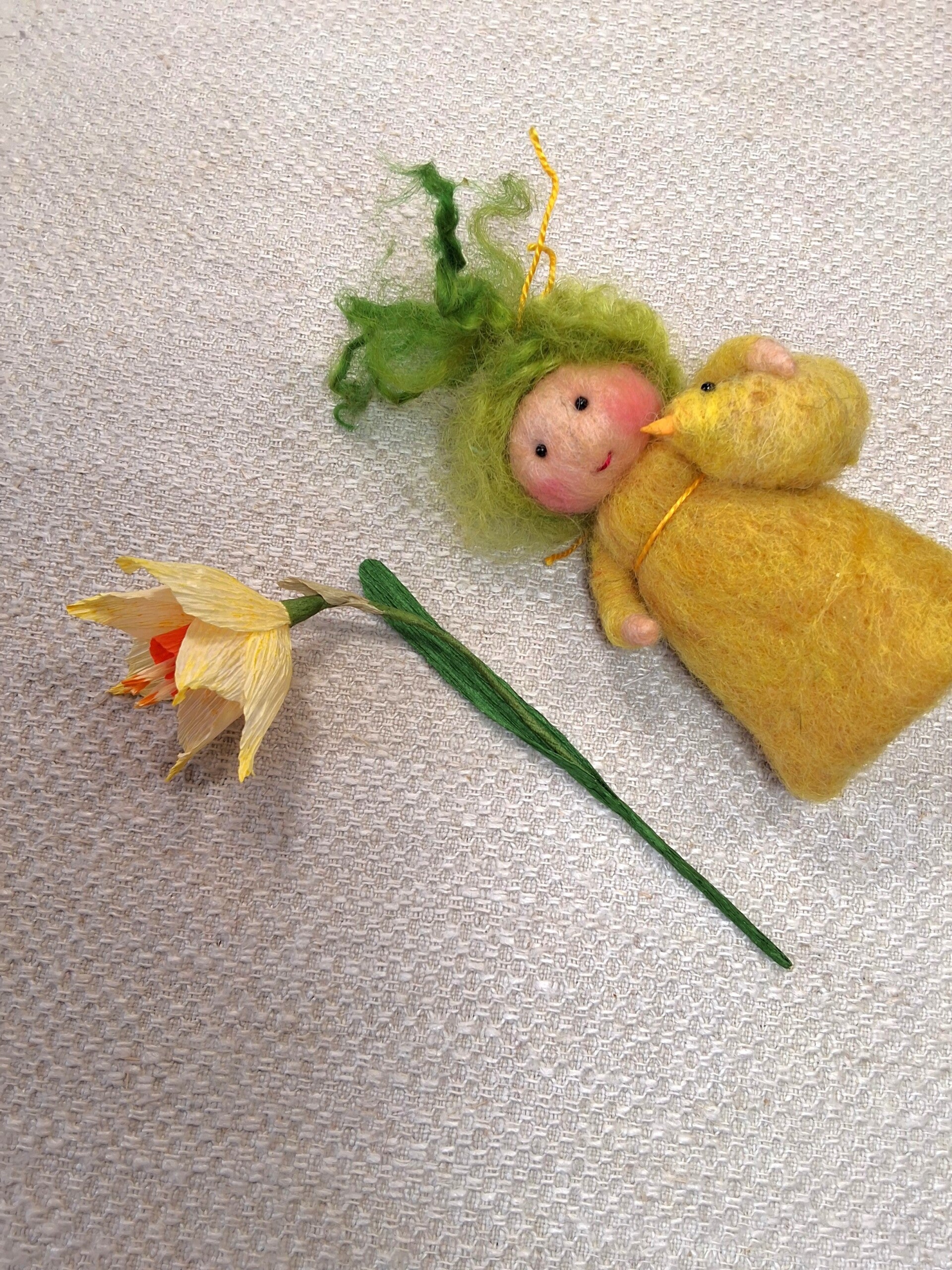 Aangevuld met kuikentje en Narcis van papier.