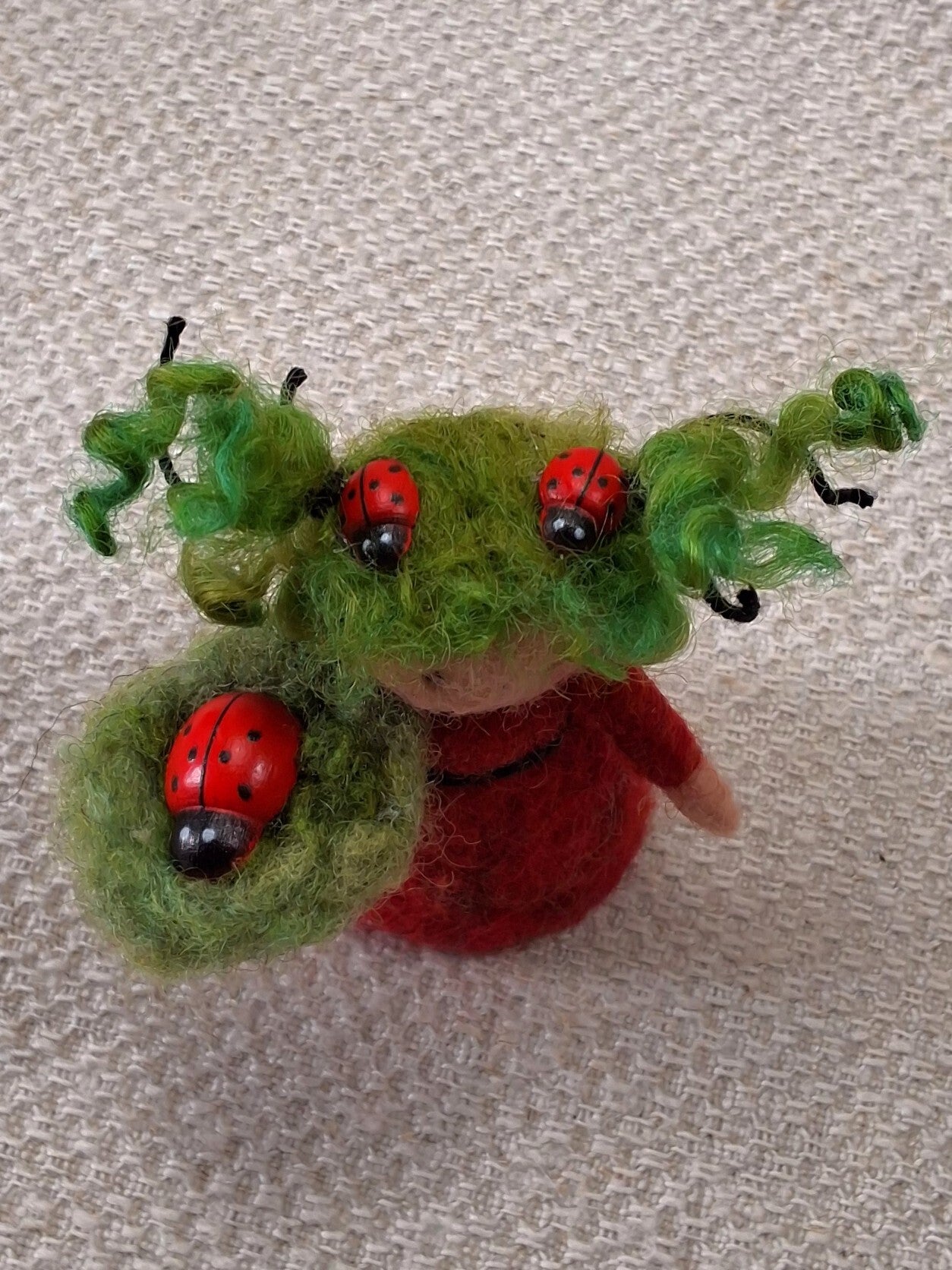 Naaldviltpopje Mini met Lieveheersbeestje.Figuurtje is ongeveer 7cm hoog.