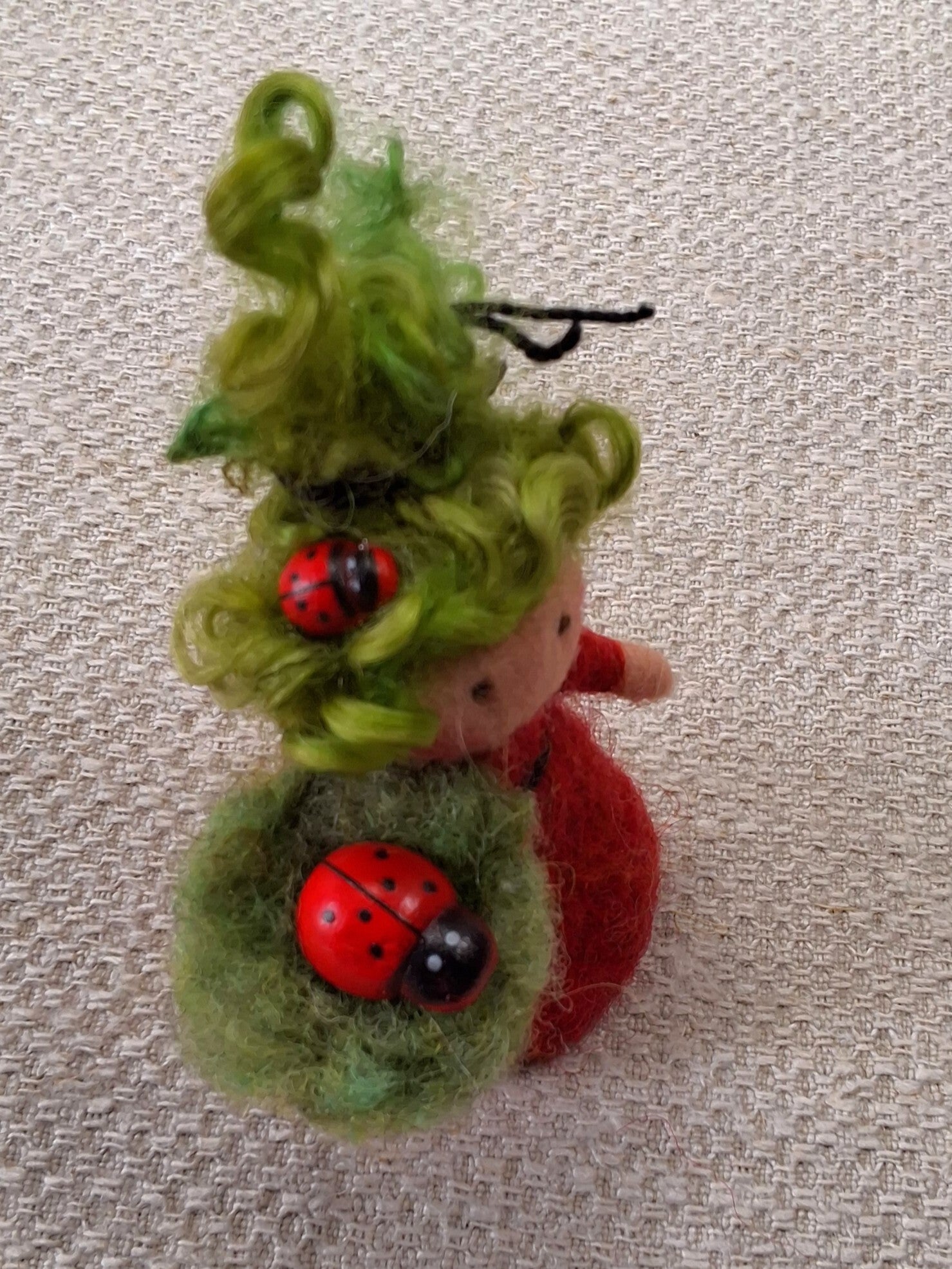 Naaldviltpopje Mini met Lieveheersbeestje.